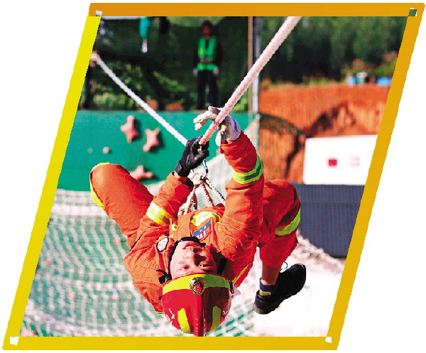 ◤在“壮鹰竞桂”比武竞赛中,桂林市消防救援支队多次获得佳绩。图为攀爬横渡项目。