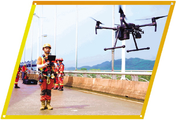 ▼图为山岳(绳索)救援技术研讨班学员正在学习无人机的使用。