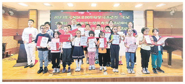 近日,由七星区社区学院、七星区青少年活动中心主办的2023年七星区全民终身学习活动周“七星大舞台”成果展暨七星区青少年活动中心2023年社会艺术水平考级总结展演活动在活动中心一楼演艺厅举行,近百名师生和家长参加了本次活动。