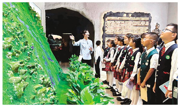 小记者们在研学导师的带领下了解甑皮岩文化。 (朱丽珍 摄)