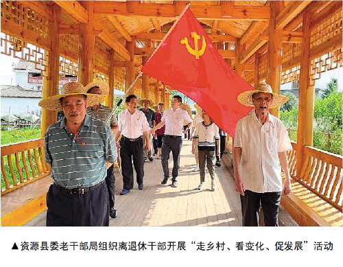 ▲资源县委老干部局组织离退休干部开展“走乡村、看变化、促发展”活动