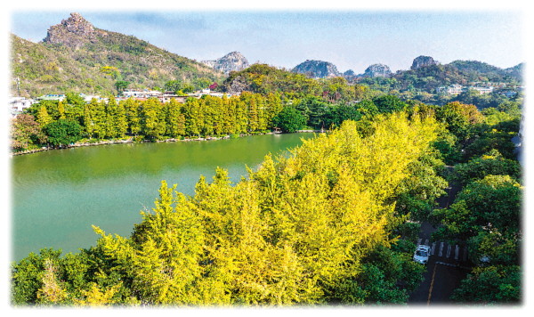 持续一周的暖阳,桂林冬色的步伐缓缓而来。桂湖边的“银杏园”终于冒了黄色尖,而对岸的水杉尚未染成深红色。在漓江解放桥旁的临江路,黄色的银杏树绕着湛蓝的漓江,显得格外醒目。一年一度的“醉美”赏叶季正逐步走进桂林人的生活。据悉,市区内种植有数万株色叶树,天气降温后,枫香、红枫,乌桕、银杏等都将给人们带来不一样的视觉美感。 记者唐艳兰 摄