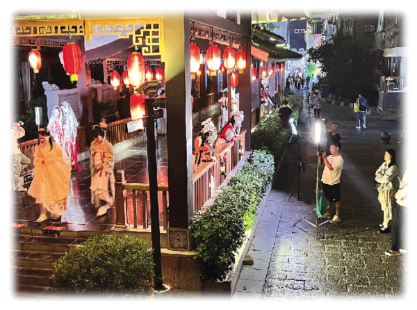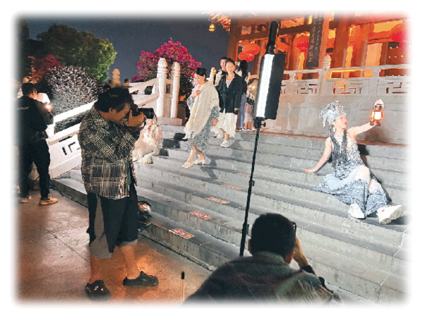 “你们别急,大家都在排队的。”华灯初上,在逍遥楼、状元廊等地,旅拍的人群更是人头攒动。一旁正在排队的摄影师告诉记者,周末是旅拍的黄金档,很多游客都是冲着夜景来的,因为逍遥楼和状元廊亮灯的时间相对平时要长,他们一般一晚上至少两拨以上的客人。“不过现在拍摄的人越来越多,好的机位都要排队等。平时人相对较少,但景点亮灯时间短,拍不了多少。”