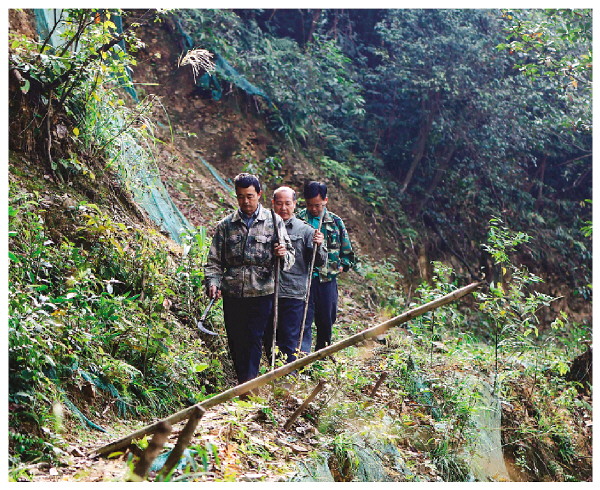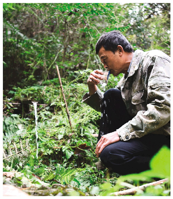 “才喜界上把山望,绿水青山自然强,巡山主保山水好……”杨周保跟同伴们每次巡山时都会唱一两首现编的山歌,一是为了解闷,二是为了壮胆。“保护区内什么动物都有,最常见的是毒蛇,我们唱山歌相当于给它们递个消息,意思是‘我们来了,咱们谁也别打扰谁’。”杨周保说,有天晚上巡山他们就遇到了两次五步蛇,现在想起来还有点后怕。