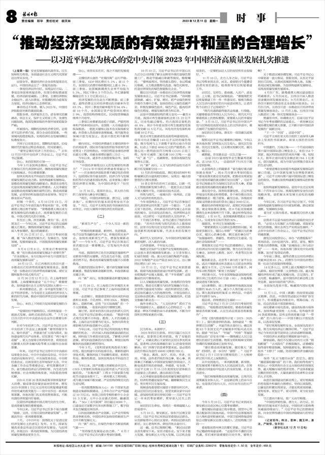 12月8日,习近平总书记主持召开的中共中央政治局会议,在总结今年经济工作时作出重要判断:“我国经济回升向好,高质量发展扎实推进,现代化产业体系建设取得重要进展,科技创新实现新的突破,改革开放向纵深推进,(下转第八版)