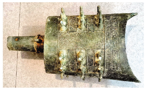 出土的春秋战国时期青铜甬钟。(灌阳县文物管理所提供)