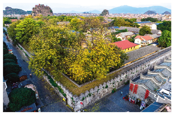 近日,王城城墙旁的树叶变色,尽显冬意。 记者唐艳兰 摄