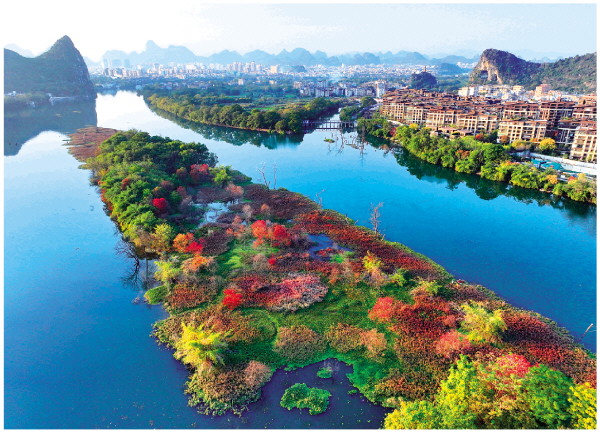 初冬时节,市区各公园景区、道路街巷、江滨湖畔、小区庭院里种植的乌桕、银杏、枫香、紫薇、栾树、水杉、梧桐、樱花等10多个品种数万株色叶树的叶子逐渐变色,层林尽染、色彩斑斓,为冬日里的桂林城增添了一抹亮色,一年一度的“醉美”赏叶季又到了。