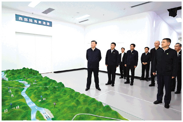 ▲12月14日至15日,中共中央总书记、国家主席、中央军委主席习近平在广西考察。这是14日上午,习近平在南宁市考察中国—东盟信息港股份有限公司,结合平陆运河沙盘听取西部陆海新通道骨干工程建设汇报。
