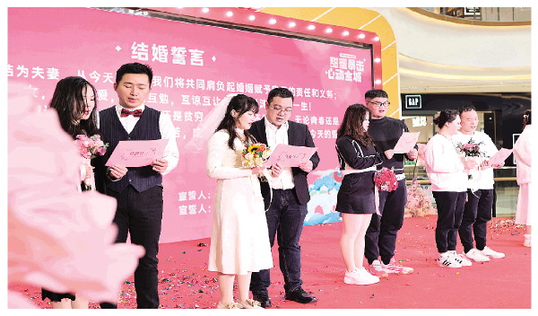 今年2月14日,七星区民政局婚姻登记处新址在客世界商场正式启用,成为广西首个入驻商业中心提供服务的婚姻登记处。新址接受户籍所在地在广西范围内的所有新人办理婚姻登记,实现了“全区通办”,满足了人口流动常态化和群众就近办理婚姻登记的期盼,解决群众“折返跑”“多地跑”等问题。新址启用当天,该婚姻登记处共为53对新人办理了结婚登记手续。 记者苏展 摄