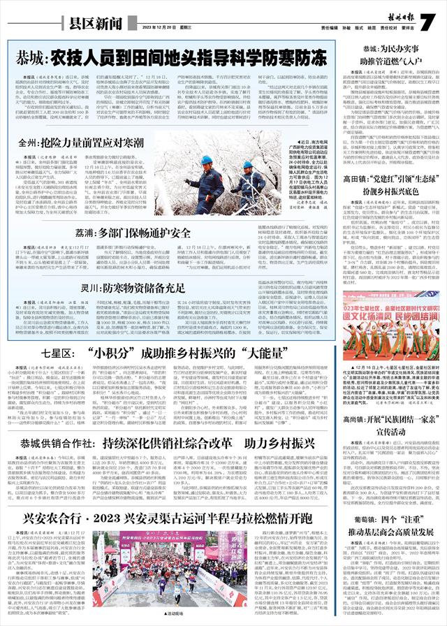 “为应对寒潮,我们运用机巡小组对可能覆冰线路进行了精细化巡视,对发现的树障隐患及时清理,组织备齐抢险力量24小时待命。采取人工观冰与智能监控实时监测线路覆冰情况,确保辖区线路供电安全稳定。”南方电网广西新电力集团荔浦供电局副总经理杨昌明介绍说。截至目前,进出新坪镇长滩村道路畅通,群众电力、物资供应正常,生产生活经营秩序井然。