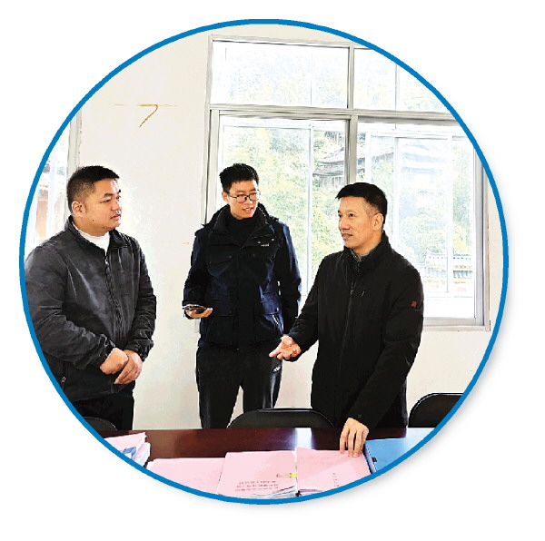 平等镇党委书记伍先军(右一)到太平村委调研。
