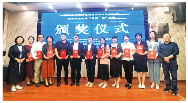 ◥曹晓莉老师(左四)在颁奖仪式现场 莫莉 摄
