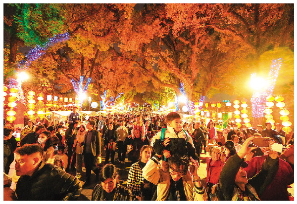 2023年12月31日晚上,在古南门前参加跨年活动的市民、游客人山人海。 记者何平江 摄