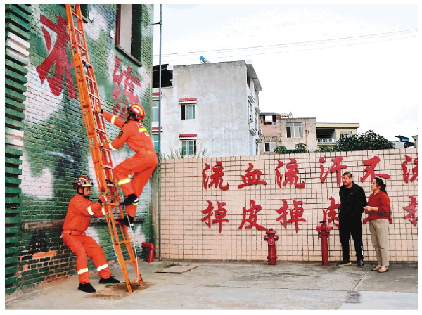 午饭后,在吴保德的介绍下,他的父母简略地了解了消防救援工作各方面情况,连他穿戴的头盔、作战服、作战靴等个人防护用具也体会了一遍。“这套装备那么重啊,你们出警也是很不容易啊。”
