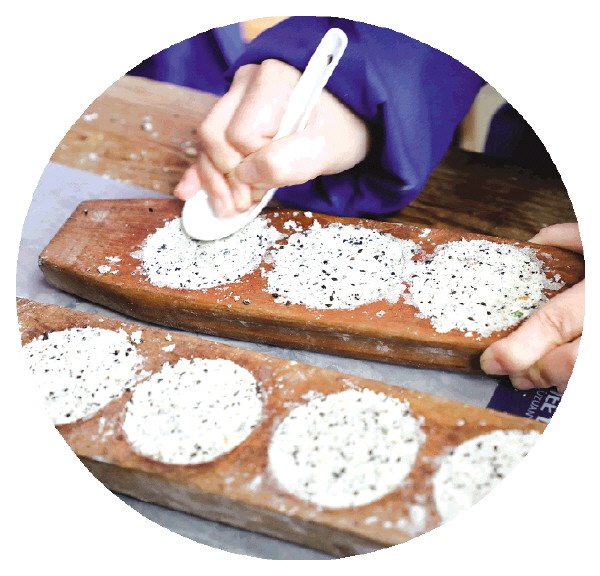 把做米饼的模具装满馅料。