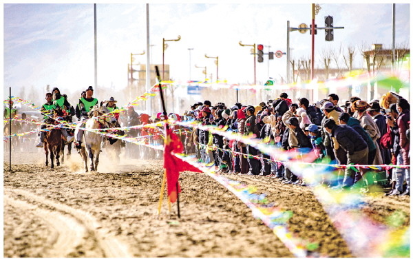 1月24日,西藏山南市森布日生态搬迁安置点举行搬迁以来的首次赛马活动。森布日生态搬迁安置点聚居着来自那曲双湖、尼玛、安多等县16个搬迁乡镇的3万多名高海拔生态搬迁移民。自2019年起,他们陆续从海拔超过4500米的羌塘草原腹地搬迁至此。