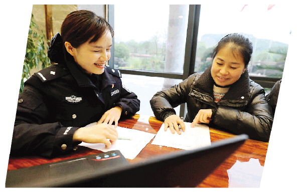 永福县公安局苏桥派出所户籍民警上门为企业办理相关证件。 记者陈静 摄