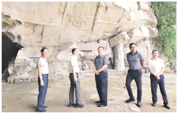 ▲桂林市人民检察院党组书记、检察长梁贻勇(中)调研永福摩崖石刻保护工作。