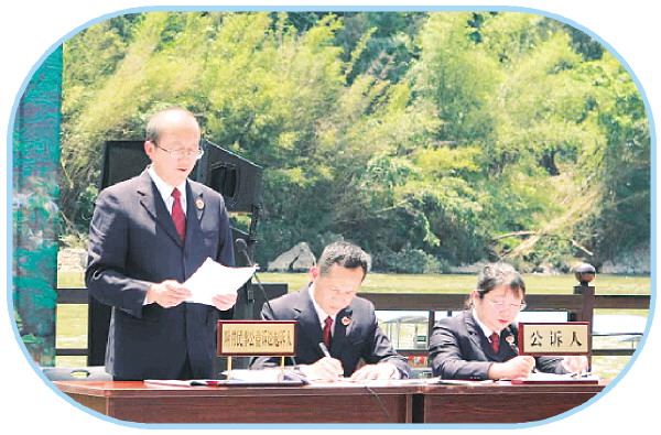 ▲2023年4月,七星区检察院依法提起的一起危害国家重点保护植物刑事附带民事公益诉讼案件,在阳朔县杨堤码头露天巡回法庭公开开庭审理,七星区检察院指派检察官作为公诉人、公益诉讼起诉人依法出庭履职。