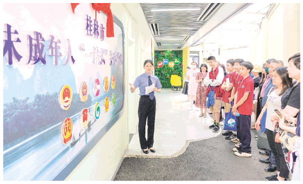 ▲桂林市检察院在检察开放日邀请学生参观未成年人“一站式”关爱中心。