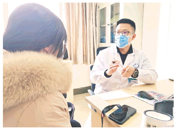 ▲湘雅二医院派驻桂林医院主治医生崔岩正在为患者解答疑问。