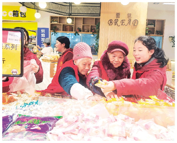 “红马甲”陪养老中心的“爷爷奶奶”购年货