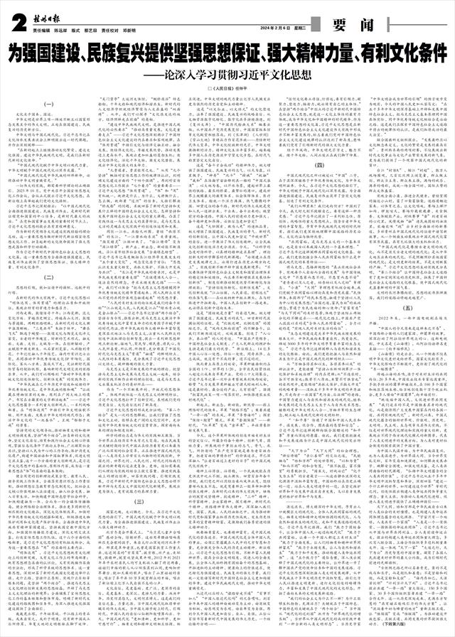 为强国建设、民族复兴提供坚强思想保证、强大精神力量、有利文化条件 ——论深入学习贯彻习近平文化思想   □《人民日报》任仲平