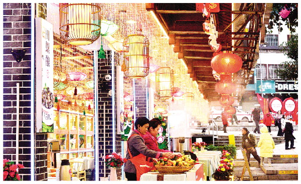 阳朔西街上商铺对店面精心布置,洋溢出浓浓的年味。 莫艳兰 摄