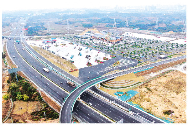 俯瞰“四改八”后的桂柳高速以及桂林服务区。记者苏展 摄