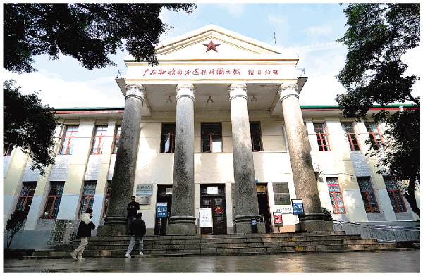 1955年2月,榕湖新馆落成,面积为2698平方米,比王城旧馆大一倍,建筑风格为两层廊柱式仿苏联建筑。同时图书馆易名为广西省立第一图书馆,桂林图书事业开启了新征程。该馆自1955年从王城迁到榕湖以后,距今已近70年,目前其馆舍仍作为图书馆使用,可以说是新中国成立以后陪伴桂林人最久的一座公共图书馆。目前已经被列为桂林市文物保护单位。