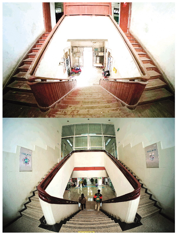 图③:广西桂林图书馆王城旧馆(上)与榕湖分馆(下)的内部设计如出一辙。
