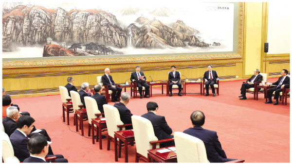 2月7日,习近平、王沪宁、蔡奇、丁薛祥等在北京人民大会堂同党外人士欢聚一堂,共迎佳节。新华社记者庞兴雷 摄