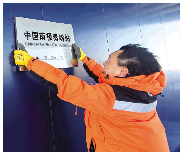 2月7日,自然资源部总规划师吴海洋为中国南极秦岭站挂牌。新华社记者周圆 摄
