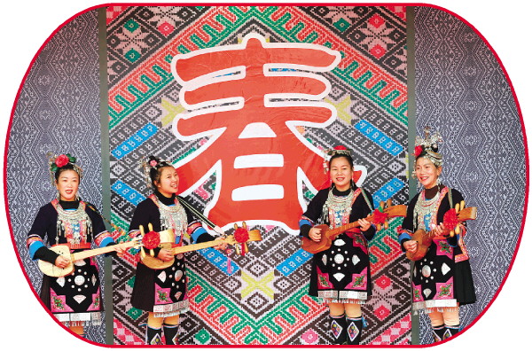2月4日,在龙胜各族自治县平等镇广南村的“闹春牛”活动中,侗族群众正在弹唱琵琶歌,祈求风调雨顺。