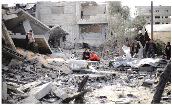 这是2月12日在加沙地带南部城市拉法拍摄的以军袭击后的废墟。 新华社发(哈立德·奥马尔 摄)