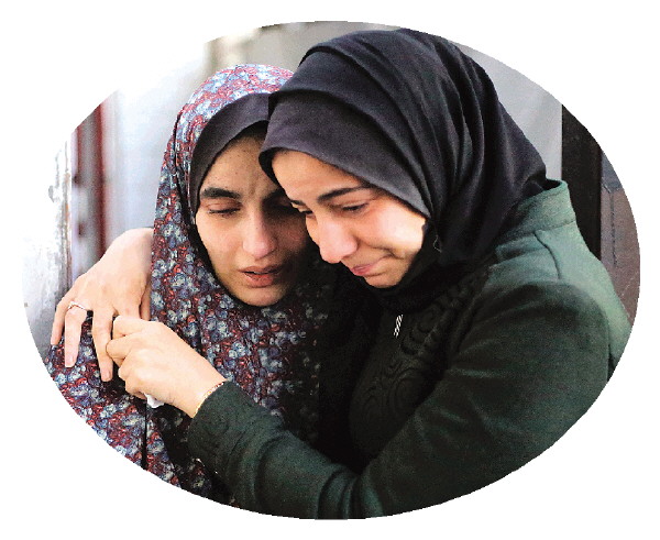2月12日,在加沙地带南部城市拉法,巴勒斯坦人悼念遇难者。 新华社发(哈立德·奥马尔 摄)