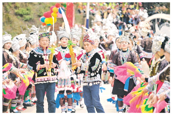 ▲2月14日,在广西柳州市融水苗族自治县杆洞乡党鸠村,苗族群众在“打同年”活动中吹芦笙。 新华社记者黄孝邦 摄