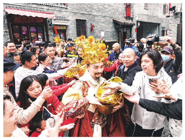 ◤2月14日,“财神”在广西南宁邕州古城巡游。 当日是农历正月初五,我国民间有“迎财神”的习俗,多地举行特色民俗活动,祈福贺新春。 新华社发 (喻湘泉摄)