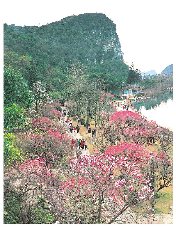 节日期间,桂林园博园花海桑田景点种植的虞美人迎来盛花期,各色虞美人五彩缤纷、千娇百媚;虞山公园、西山公园种植的梅花,以及伏波山景区种植的紫玉兰也迎来盛放,均吸引了大量市民、游客前来赏花游玩。