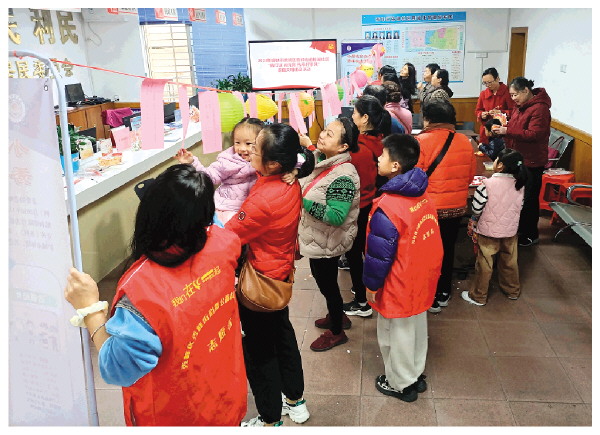 在榕湖社区,居民们一起猜灯谜。 肖婷 摄