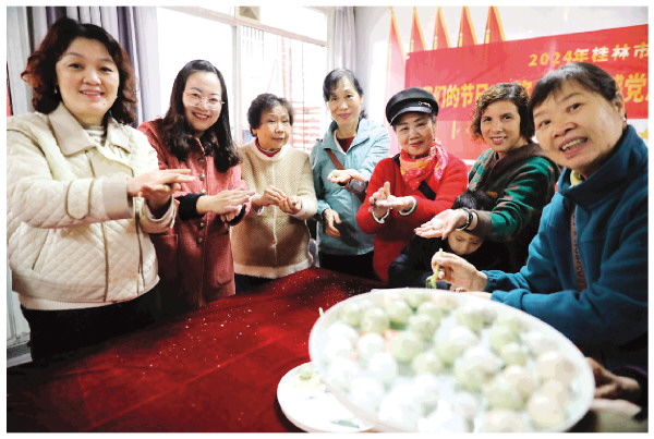 在解西社区,居民们齐聚一堂包汤圆。 记者陈静 摄