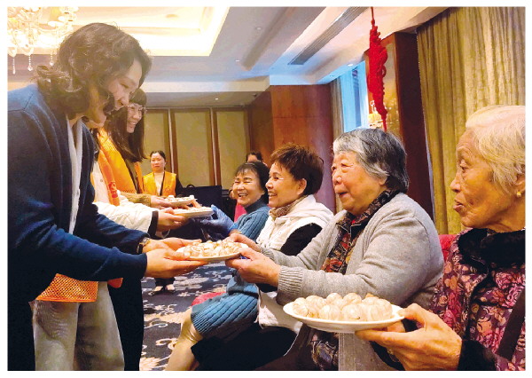 五里店社区工作人员和志愿者把煮好的汤圆送给老人们。 记者张苑 摄