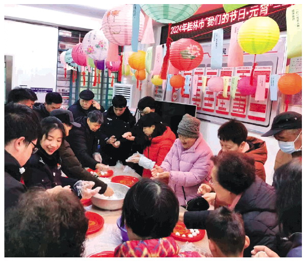 ▲2月23日,城北社区组织共建单位桂林市公安局生态环境保护分局和桂林市林业设计院党员志愿者、居民群众50多人开展“邻里和谐闹元宵、廉政灯谜猜猜猜”活动。