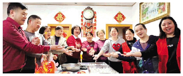 ◤居民们齐聚一堂包汤圆,欢乐庆元宵。