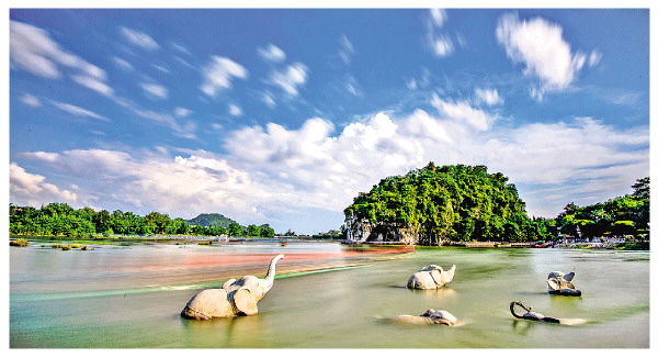蓝天白云映衬下的象鼻山。王战飞 摄