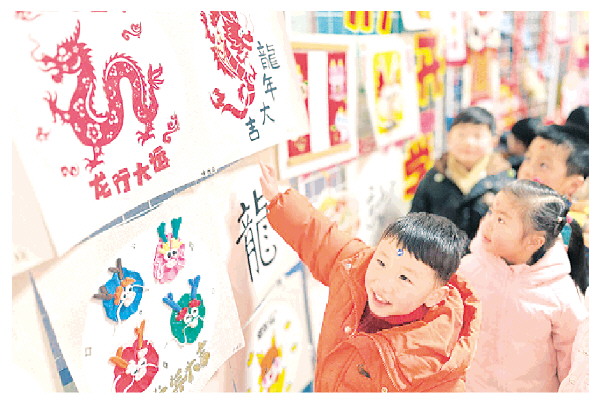 此外,寒假里孩子们与爸爸妈妈一起通过体验春节年味,阅读与龙有关的绘本故事,以龙元素为主题制作的亲子手工,让大家感受到龙年春节的喜庆与多姿多彩。瞧,幼儿园师生的假期作品展示已经成为校园里最靓丽的一道风景。 (韦华)