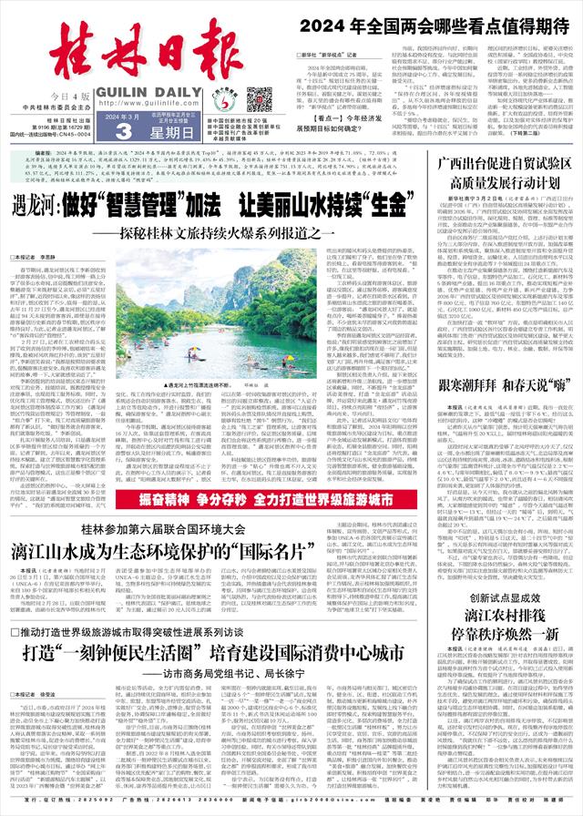 “近日,市委、市政府召开了2024年桂林世界级旅游城市建设发展规划实施工作推进会,动员全市上下凝心聚力加快推动打造世界级旅游城市取得突破性进展。桂林商务人将认真贯彻落实会议精神,采取一系列措施繁荣桂林市场,促进全市消费增长。”市商务局党组书记、局长徐宁接受采访时说。