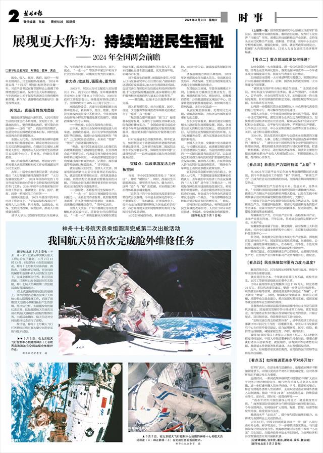 就业、收入、住房、教育、医疗……每年全国两会,民生话题热度最高。2024年是实现“十四五”规划目标任务的关键一年。习近平总书记在春节团拜会上强调了持续增进民生福祉,保持社会大局和谐稳定。今年的两会上关于保障和改善民生将有哪些新部署、新作为?透露哪些政策新信号?备受各界关注。