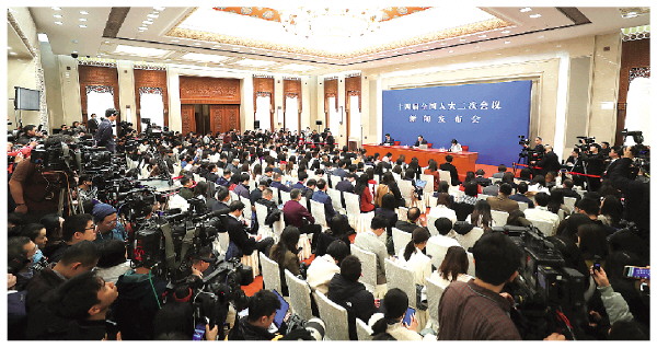 ▲3月4日,十四届全国人大二次会议在北京人民大会堂举行新闻发布会。大会发言人娄勤俭就大会议程和人大工作相关问题回答中外记者的提问。 新华社记者卢烨 摄